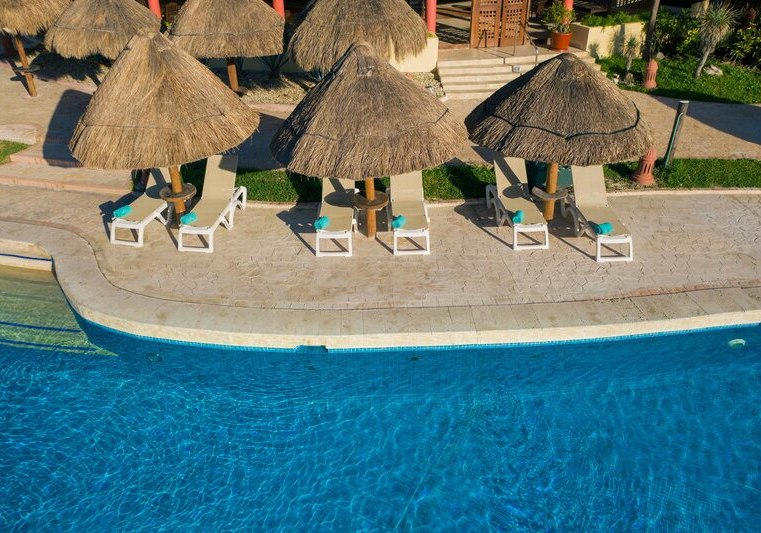 - Poollandschaft: Große Wasserflächen mit Aktivitätspool und separatem Kinderbereich.