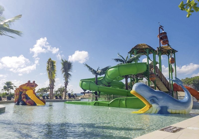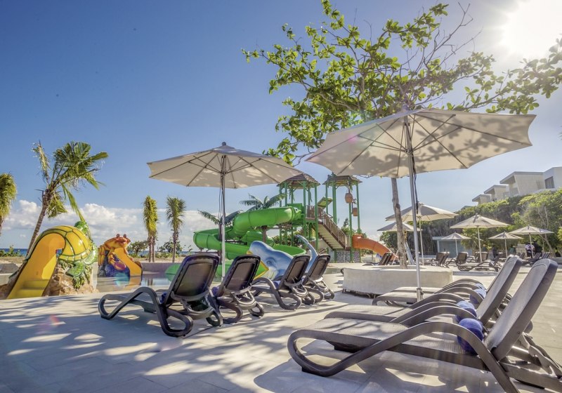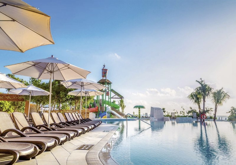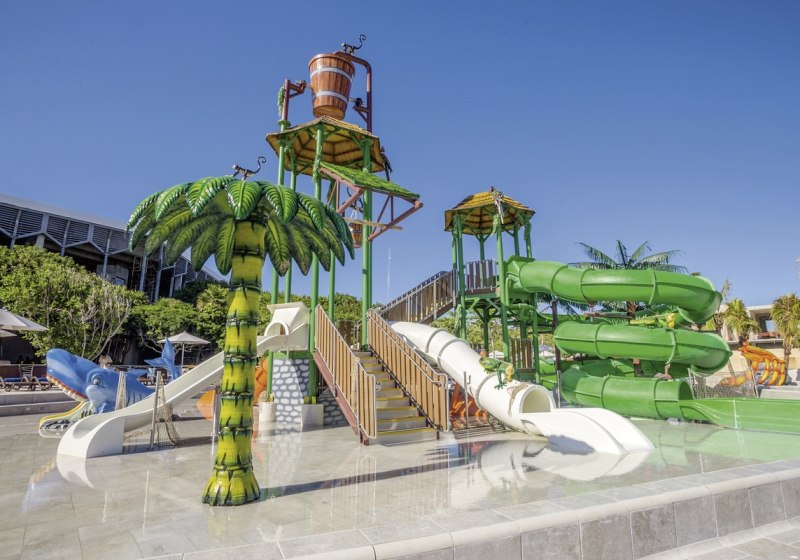 Die Anlage ist grosszügig angelegt und verteilt das Leben auf mehrere Wasserbereiche: zehn Pools, ein Kinderbecken, ein Infinitypool mit Kinderrutschen und der Ocean Front Aquapark prägen das Bild. Sonnenliegen und Schirme gehören selbstverständlich dazu, WLAN in den öffentlichen Bereichen ist kostenfrei.