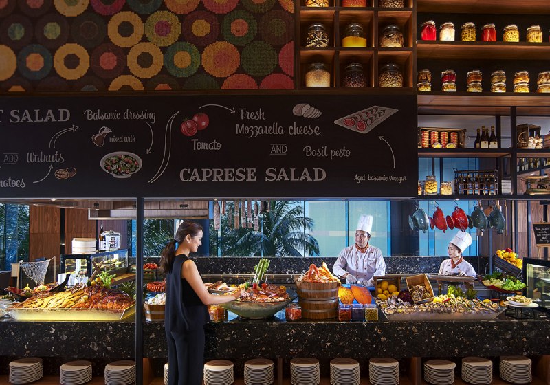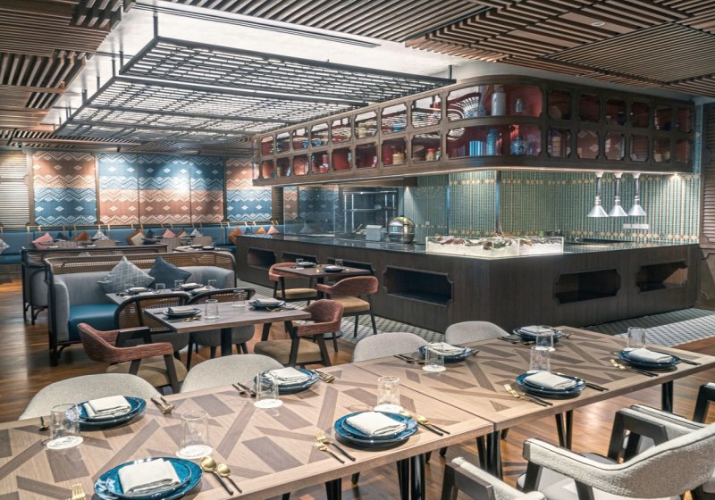 - Vier Küchen: Italienisch, asiatisch/international, Thai‑Fisch/Meeresfrüchte und indische Küste.