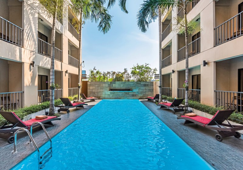 Im The Cottage Suvarnabhumi wohnt Ihr in einem smart organisierten Flughafenhotel mit 103 Zimmern und fünf Etagen, Baujahr 2010. Die Atmosphäre wirkt angenehm unkompliziert: kurze Wege, klare Strukturen, funktionale Ruhe. Der Außenpool mit Sonnenterrasse bildet den entspannten Gegenpol zur Hauptstraße. So startet oder endet Ihr Eure Bangkok-Reise praktisch und gelassen.