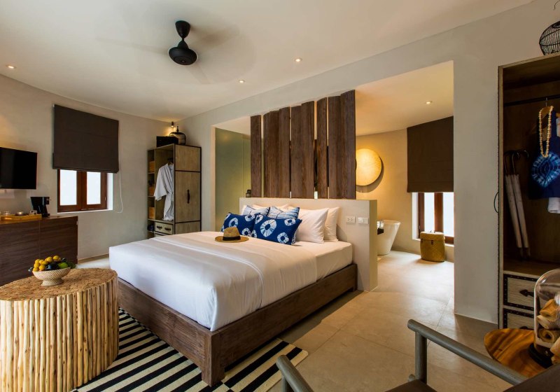 Bangsak Village ist ein Rückzugsort direkt am langen Sandstrand von Bangsak, ausgerichtet auf Ruhe und wohlüberlegte Einfachheit. Das Mindestalter von 12 Jahren sorgt für eine entspannte Atmosphäre ohne Kindertrubel. Euch erwarten offene Wege durch den Garten, eine klare Formensprache und Plätze, an denen Ihr den Blick frei aufs Meer halten könnt. Das Haus richtet sich an Paare, ruhesuchende Freunde und Genießer, die bewusst entschleunigen wollen.
