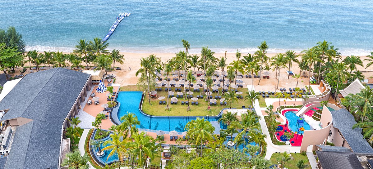 Die Bühne für eure Strandferien liegt direkt am Bang Niang Sandstrand von Khao Lak in Phang-Nga. Ihr tretet aus dem Resort auf feinen Sand, nutzt Liegestühle und Sonnenschirme und greift an der Strandbar zu kühlen Drinks. Der Flughafen Phuket ist etwa 95 Kilometer entfernt, was eine planbare An- und Abreise ermöglicht.