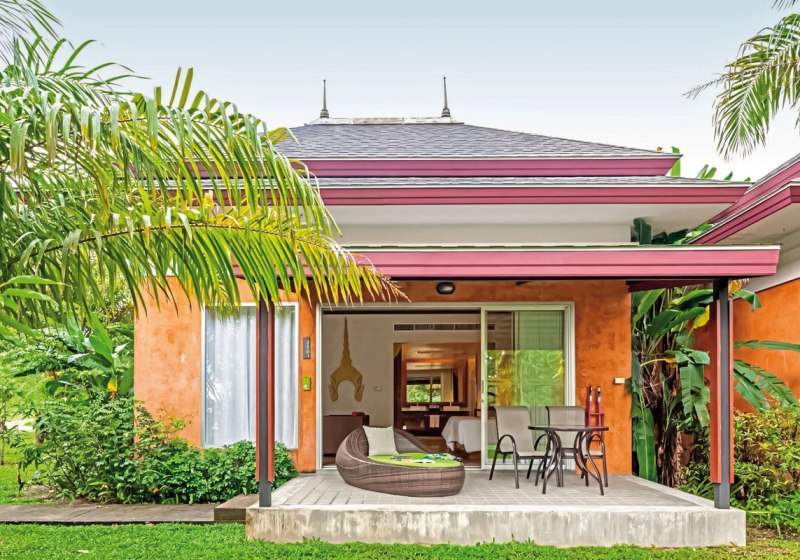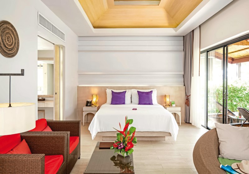 Ausgewählte Villen erweitern Euren Komfort um freistehende Badewanne, Jacuzzi, Privatpool oder einen separaten Wohnbereich. Insgesamt bietet das Resort 177 Nichtraucherunterkünfte; entstanden 2011 und 2013 renoviert. Je nach Lage genießt Ihr Garten- oder Poolblicke, mit Raum zum Zurückziehen und Ankommen.