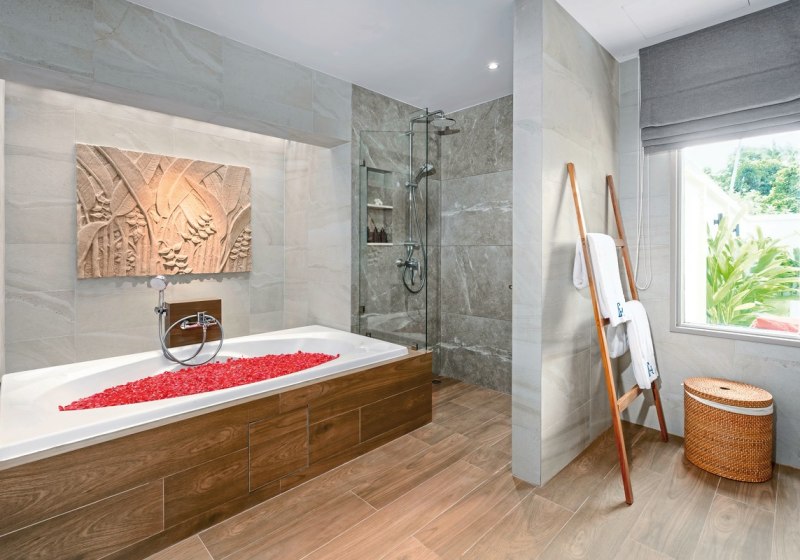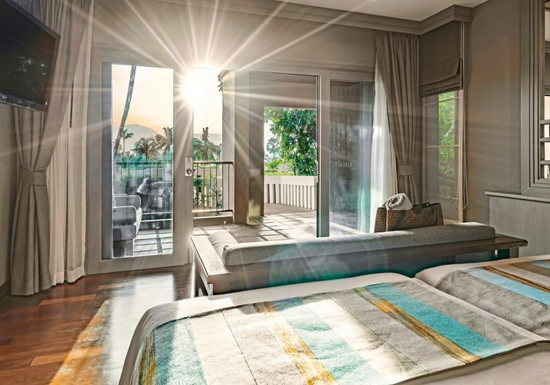 In der Garden Villa (ca. 38 m²) erwartet Euch ein Bad mit Badewanne und separater Dusche/WC, Föhn und eine Sitzecke. Klimaanlage, Safe, Sat-TV und kostenpflichtige Minibar sind ebenso an Bord. Der Balkon oder die Terrasse öffnet sich zum Gartenblick – ruhig, grün, nah an Wegen und Pool.