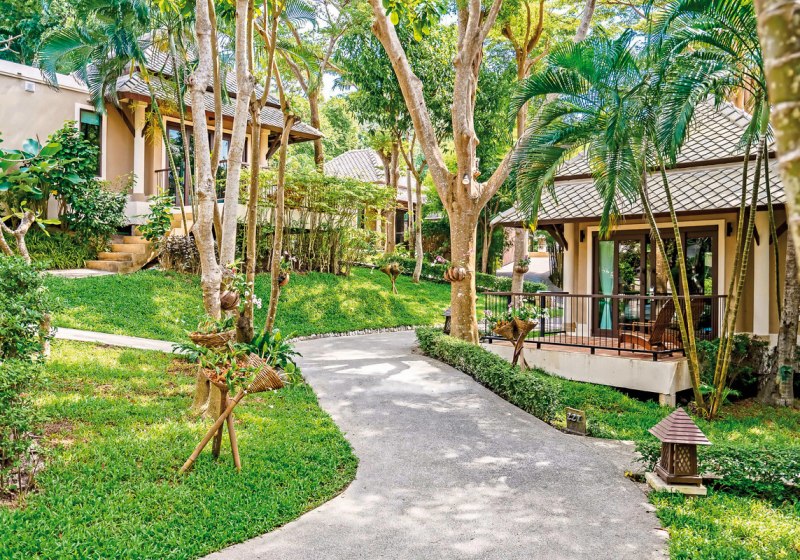 - Garden Villa: 38 m² mit Gartenblick, Wanne, separater Dusche und Balkon/Terrasse.