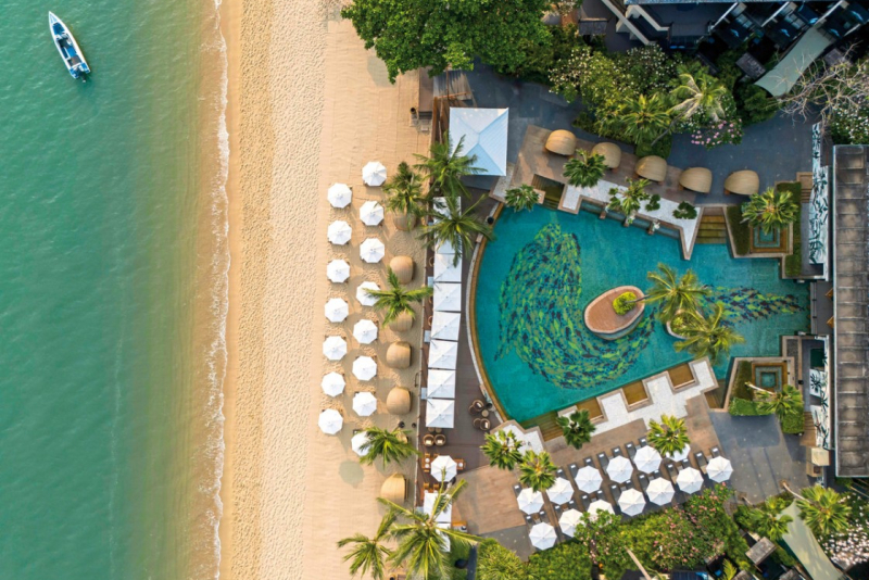 Das Anantara Bophut Koh Samui Resort liegt direkt am Strand mit einem eigenen weißen Sandstrand, was besonders für Strandliebhaber ideal ist. Der Flughafen Samui ist nur 9 km entfernt, was eine einfache An- und Abreise ermöglicht.