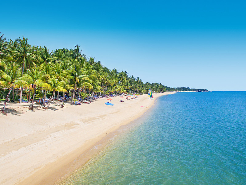 Das Resort liegt am Maenam Beach im Norden von Koh Samui, direkt am 300 Meter langen Strand. Die Anreise bleibt entspannt: Vom Flughafen Koh Samui erreicht Ihr das Hotel in etwa 20 Fahrminuten. Bis nach Chaweng plant Ihr etwa 30 Fahrminuten ein – gut für Ausflüge und Abwechslung am Abend.