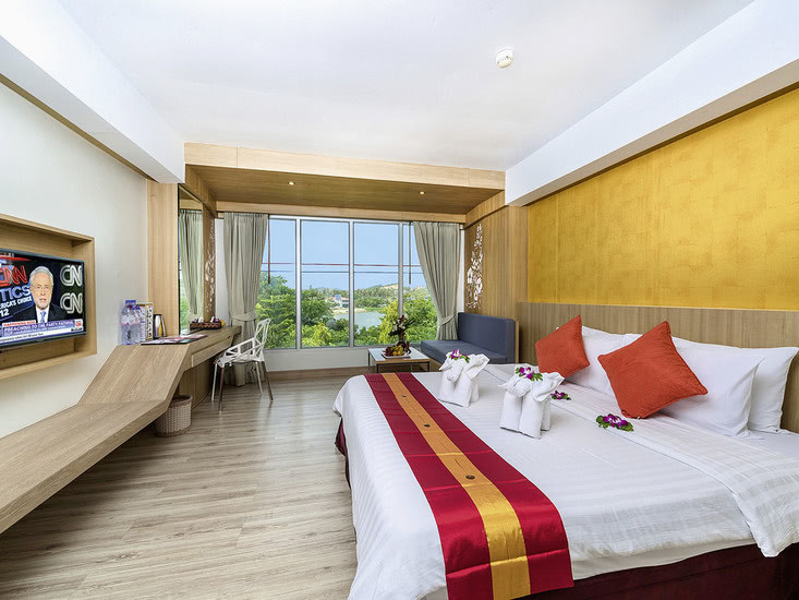 Im Lake Wing bezieht Ihr ca. 30 m² große Zimmer mit klarer Ausstattung: Badewanne mit WC, Föhn, Klimaanlage, Telefon, Sat-TV, Minibar und Safe. Sie kommen ohne Balkon aus – ideal, wenn Ihr Chaweng und Strand als erweitertes Wohnzimmer nutzen wollt und Wert auf Funktionalität legt.