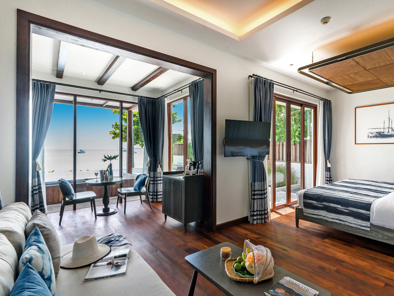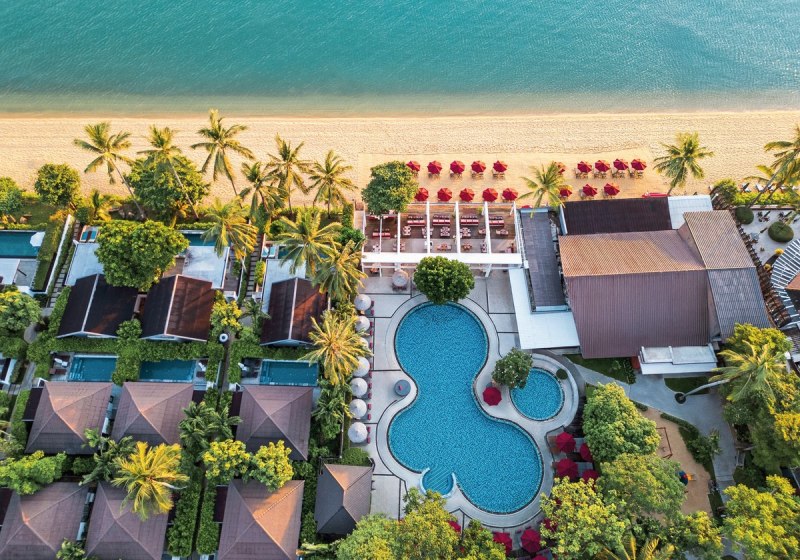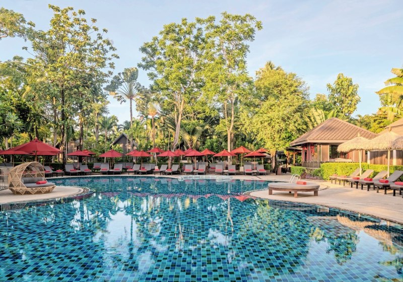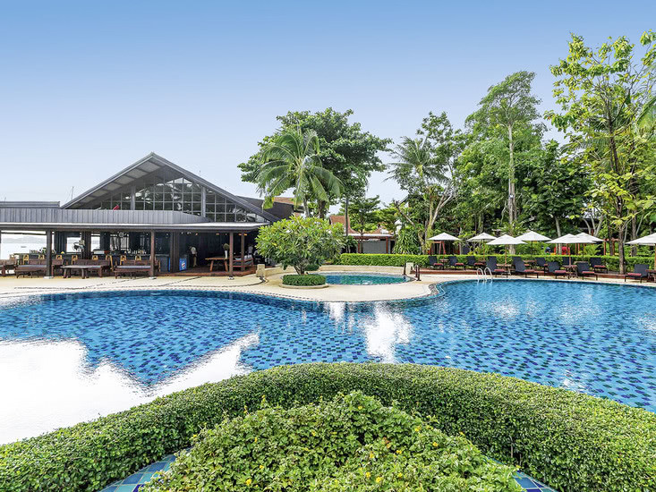 Die 122 Villen sind privat gelegen und auf Rückzug und unkomplizierte Urlaubsroutine ausgelegt. Ihr bewegt Euch zwischen Strandbar, Poolbar und Restaurant mit internationaler und thailändischer Küche, während kostenfreies WLAN überall verlässlich verfügbar ist. Für entspannte Pausen nutzt Ihr Bibliothek, Spielzimmer oder den Spielplatz. Die Atmosphäre bleibt tagsüber gelöst, abends sorgt Live‑Musik an ausgewählten Tagen für angenehme Töne. Highlight: Villen teils mit privatem Pool für maximale Privatsphäre.