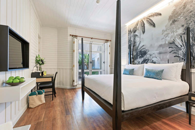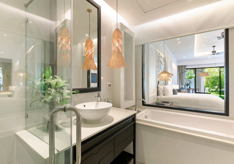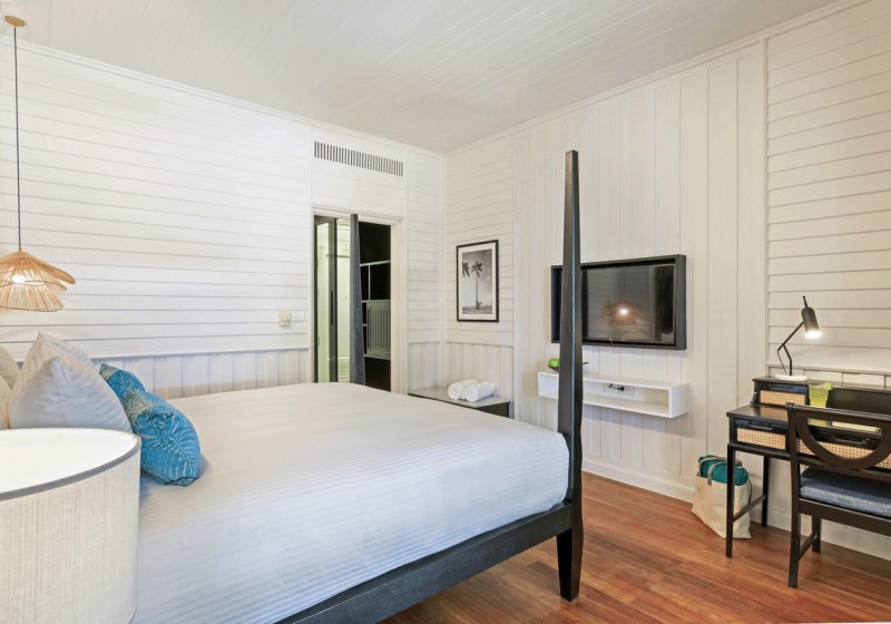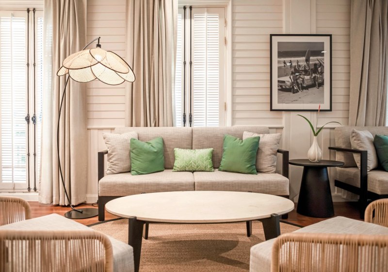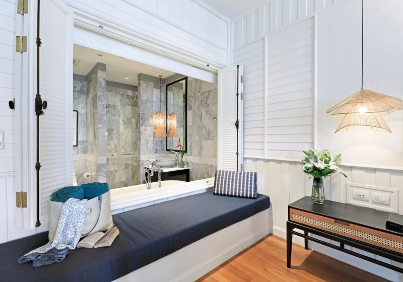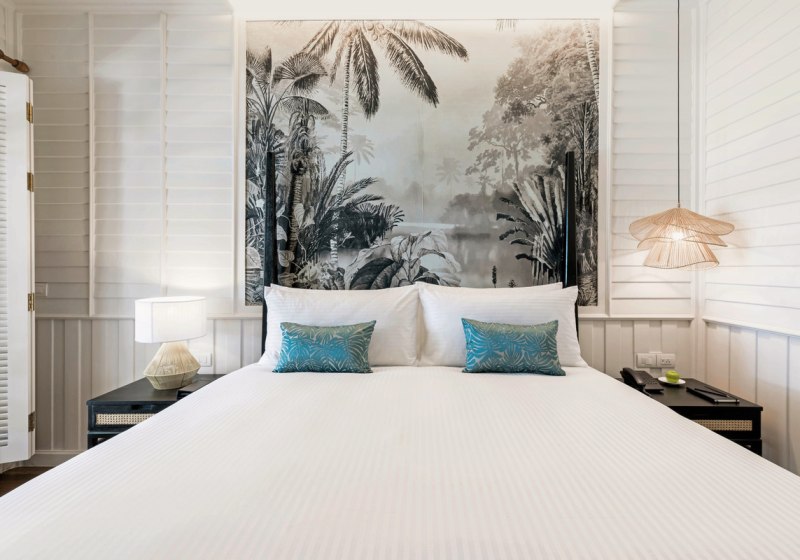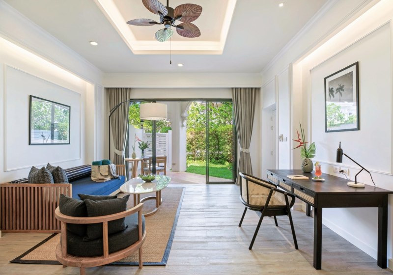 Die Deluxe Suite „Lamai“ misst circa 80 Quadratmeter, liegt in der zweiten Etage und verfügt über einen kleinen Balkon. Der zusätzliche Platz eröffnet eine entspanntere Raumwirkung für längere Aufenthalte. Damit richtet Ihr Euch komfortabel ein, ohne Überfrachtung. Highlight: Großzügige Suite mit klarem Layout für mehr Bewegungsfreiheit.
