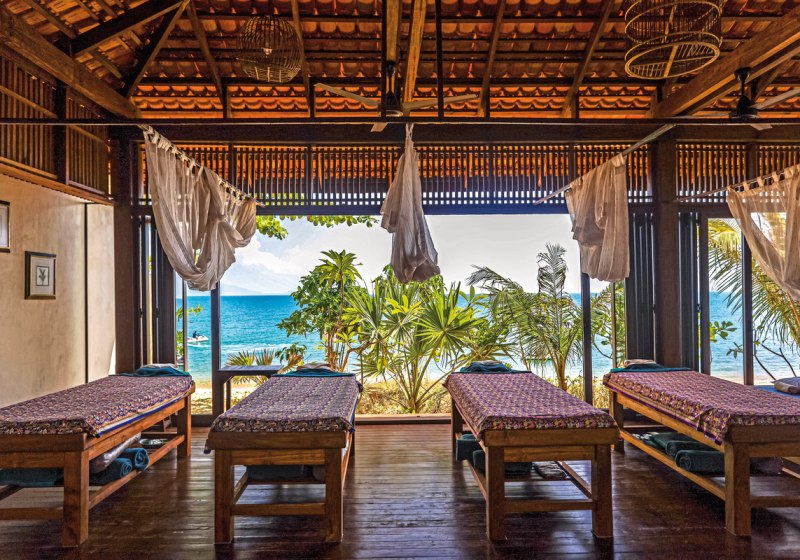 Zusätzlich stehen Sauna und Dampfbad zur Verfügung, um den Tag ruhig ausklingen zu lassen. Die ruhige Anlage unterstützt diese Atmosphäre, Wege bleiben kurz zwischen Villa, Strand und Behandlungsräumen. So fügt sich Wellness als stimmiges Element in Euren Tagesablauf ein – flexibel buchbar und klar fokussiert auf Erholung ohne Umwege.