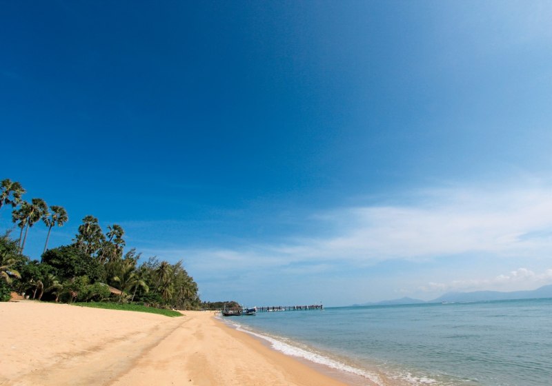 Ihr wohnt direkt am Maenam Beach auf Koh Samui. Der Flughafen Koh Samui liegt etwa 13 Kilometer entfernt, der lebhafte Chaweng Beach rund 12 Kilometer. So genießt Ihr eine ruhige Strandlage mit guter Anbindung an Inselpunkte für Ausflüge oder Abende außer Haus. Die Anlage öffnet sich zum Meer, während Gartenwege Euch zu Restaurant und Pool führen. Für Transfers steht ein Hotelbus gegen Gebühr bereit; zusätzlich hilft die klare Distanzlage bei der Planung Eurer Wege zwischen Strandzeit, Inselerkundung und Rückzug in die Villa.