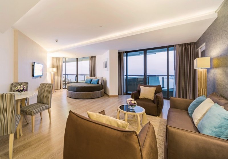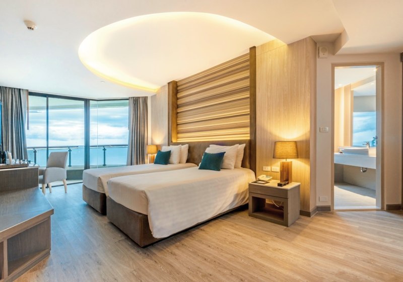 Je nach Kategorie sind Optionen wie Meer- oder Poolblick, Familienzimmer, Schreibtisch oder Sitzecke möglich. Kingsize-, Queensize- oder Twin-Betten sowie Zustellbett-Optionen unterstützen unterschiedliche Reisepläne. Nichtraucherzimmer sind ausgewiesen. Highlight: Geräumige Grundrisse mit Balkon und separater Dusche.