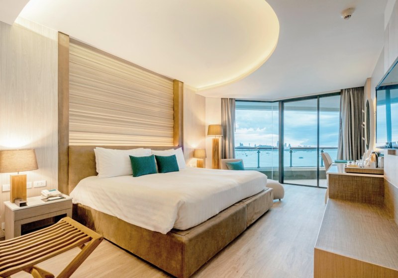 Ihr bewegt Euch zwischen modernem Hauptgebäude mit 26 Etagen und einem niedrigeren Nebengebäude. Kulinarisch warten ein thailändisch-internationales Hauptrestaurant und eine kantonesisch geprägte Option, ergänzt von Bar und zwei Swim-up-Bars. Kinderclub und Betreuung sprechen Familien an, während Spa und Fitnessraum entspannte oder aktive Stunden ermöglichen. Highlight: Direkte Strandlage mit kurzer Anbindung ins Zentrum.