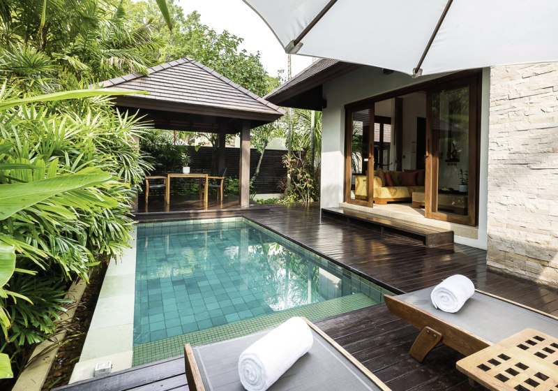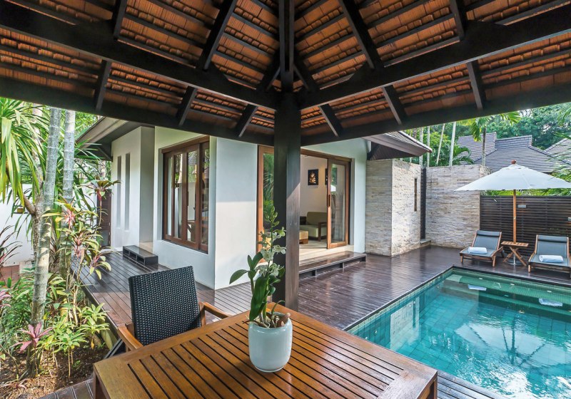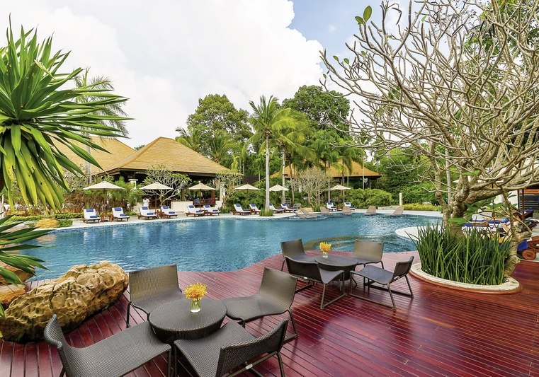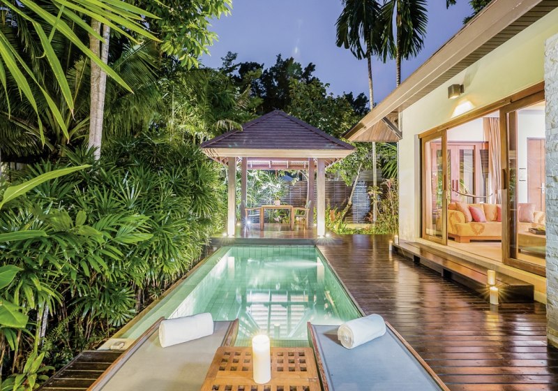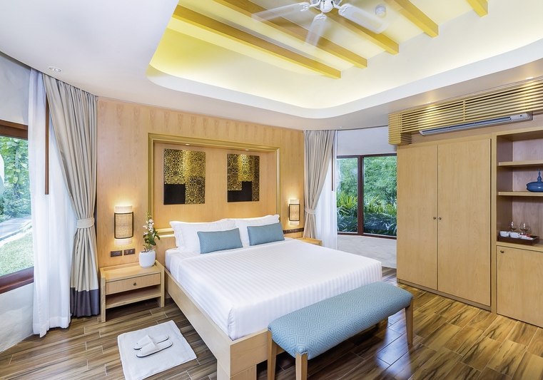 Die Architektur bleibt angenehm unaufgeregt und wurde 2021 zuletzt aufgefrischt. 60 Wohneinheiten schaffen eine maßvolle Größe, die Service und Ruhe begünstigt. WLAN in der gesamten Anlage, Bibliothek und Bars geben dem Tag Struktur, während Whirlpools und der Pool mit Liegen und Schirmen den Ton sanft dämpfen. Ihr bewegt Euch zwischen Restaurantterrasse, Lobbybar und Garten wie auf einem gut geölten Parcours, getragen von zugewandtem Service in Englisch und Thai. Wer Qualität ohne Lärm schätzt, fühlt sich hier sofort richtig.