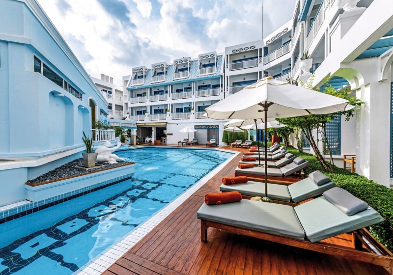 Im Andaman Seaview Hotel wohnt Ihr in einem Strandhotel mit chinesisch-portugiesischen Architekturdetails, das eine angenehm ruhige, gepflegte Atmosphäre bietet. Über die Uferstraße hinweg erreicht Ihr den Karon Beach, während die grüne Gartenanlage und zwei Außenpools mit separatem Kinderpool für entspannte Tage sorgen. Highlight: Architekturdetails mit Charakter, klar erkennbar und stimmig umgesetzt.
