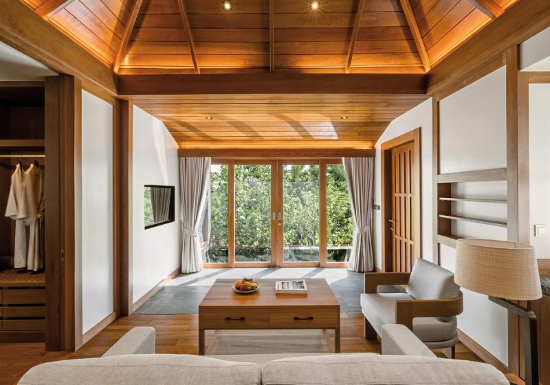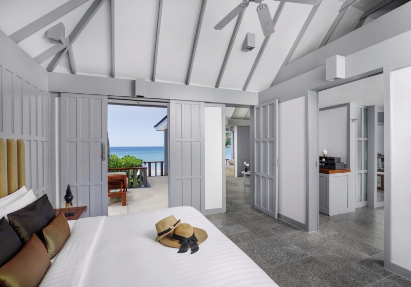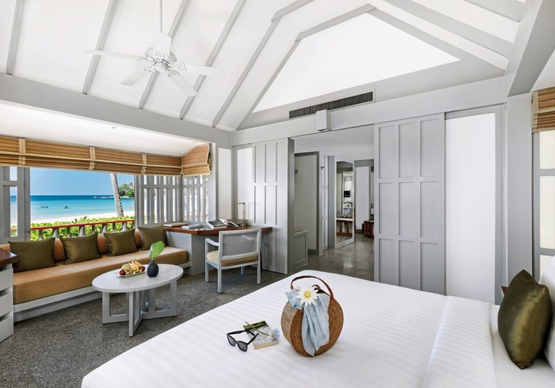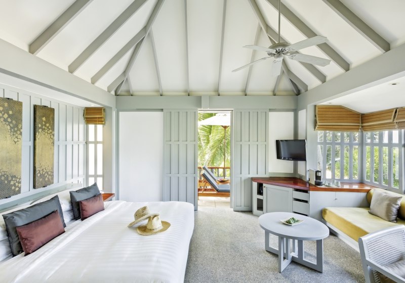 Die Beach Suiten liegen in erster Strandreihe mit direktem Zugang und Meerblick. Beach Deluxe Suiten ergänzen eine separate Lounge und eine große überdachte Veranda. Pool Villen bieten ein separates Schlafzimmer, zwei Bäder, Privatpool und Außendusche – ideal, wenn Ihr Privatsphäre und kurze Wege zum Wasser verbinden möchtet.