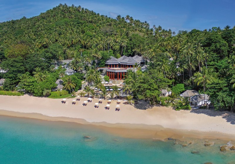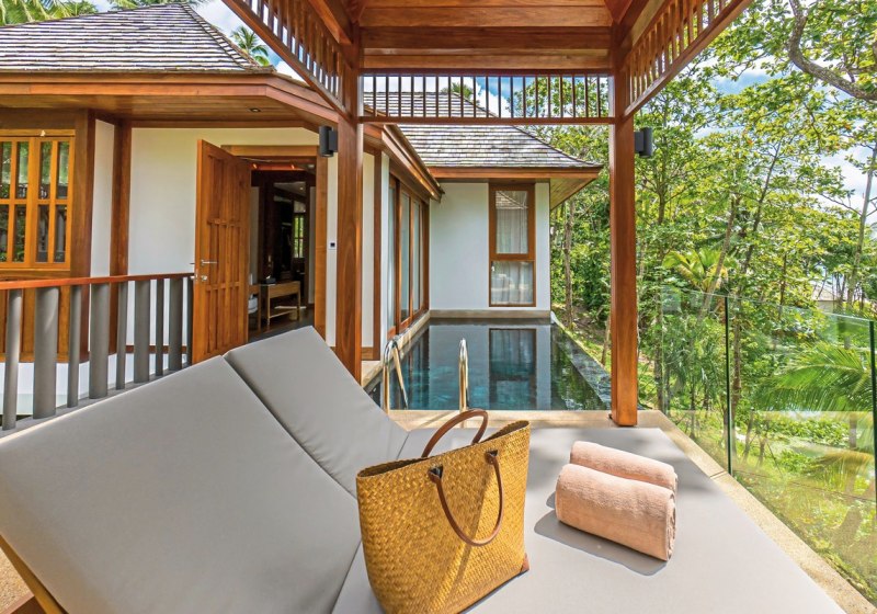 Zwischen grünen Hängen und dem hellen Sand des Pansea Beach erlebt Ihr Thailand-Ferien mit klarer Struktur und viel Raum. The Surin Phuket ist als Bungalowanlage am Hang gebaut, Wege und Treppen verbinden Cottages, Restaurants und Strand. Drei Open-Air-Restaurants, ein Spa und der Blick aufs Meer prägen den Tagesrhythmus, vom ersten Kaffee bis zum letzten Licht.