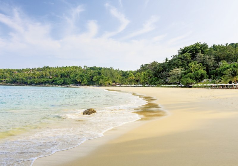 The Surin Phuket liegt direkt am Pansea Beach auf Phuket. Der feinsandige Strand grenzt unmittelbar an die Anlage, Liegen und Sonnenschirme stehen bereit. Vom internationalen Flughafen Phuket trennen Euch rund 20 Kilometer. Für Golfrunden erreicht Ihr den Laguna Golf Club in etwa zehn Minuten, ideal für eine morgendliche Tee Time oder eine späte Neun.