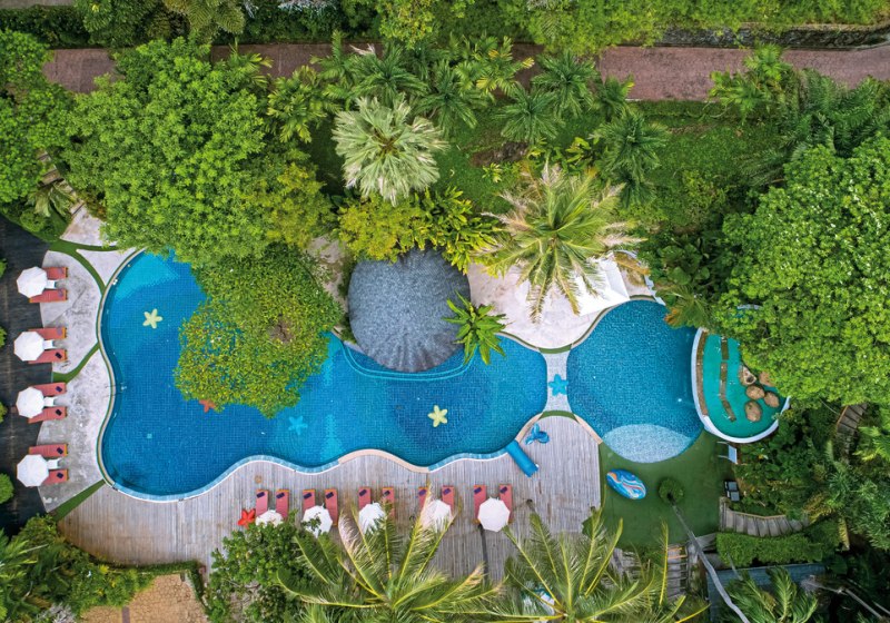Im Peach Hill Resort & Spa wohnt Ihr in einem Resort, das mit drei Pools, üppiger Gartenanlage und klarer Struktur überzeugt. Die Atmosphäre ist leger, familienfreundlich und zugleich angenehm ruhig. Während Ihr am Kinderpool Nähe und Überblick behaltet, findet Ihr an separaten Becken mehr Raum für eigene Bahnen und kurze Pausen zwischen den Zügen.