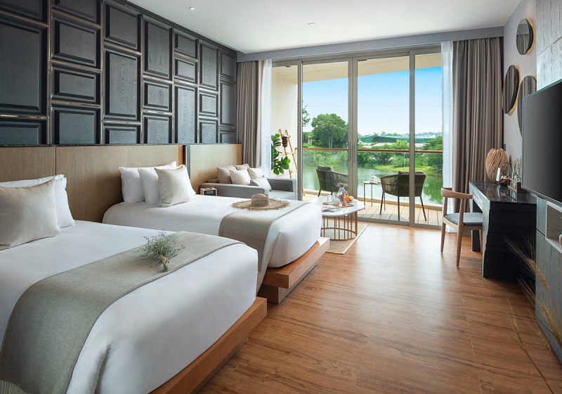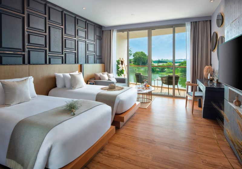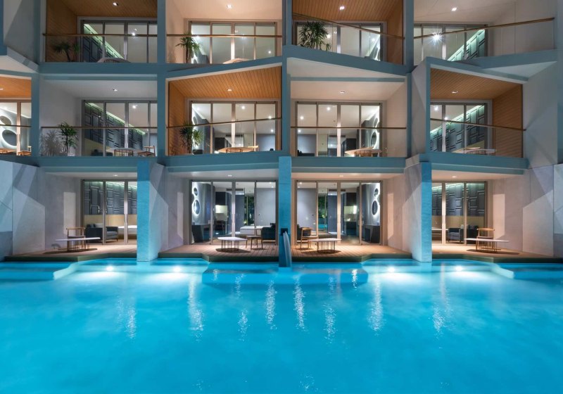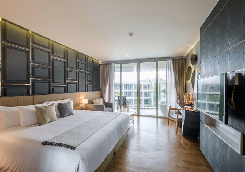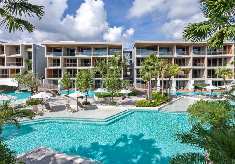 Im Wyndham Grand Nai Harn Beach Phuket wohnt Ihr in einer weitläufigen Garten- und Lagunenanlage mit zehn Pools, ruhig und dennoch nah am Nai Harn Beach. Die Architektur öffnet sich auf Wasserflächen und Grün, Wege führen zu Terrassen und Poolbereichen. Familien, Paare und Freundesgruppen finden viel Raum, moderne Services und klare Strukturen. Highlight: Zehn Pools verteilen sich geschickt und schaffen entspannte Rückzugsorte.
