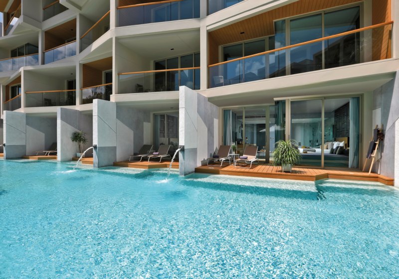 - Weitläufige Pools: Zehn Pools verteilen sich über Garten- und Lagunenbereiche.