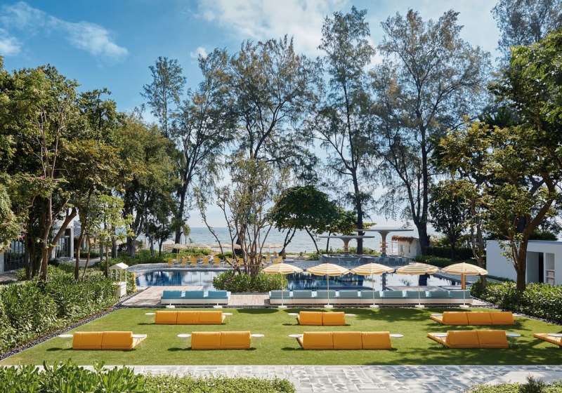Im The Standard Hua Hin wohnt Ihr direkt am Strand von Hua Hin und spürt sofort die lässige, gut organisierte Strandhotel-Atmosphäre. Offene Bereiche mit Garten und Sonnenterrassen führen Euch zum Außenpool, zur Strandbar und zu den gemütlichen Liegeflächen. WLAN ist im gesamten Haus kostenlos, sodass Ihr entspannt planen, teilen und streamen könnt, ohne aus dem Rhythmus zu geraten.