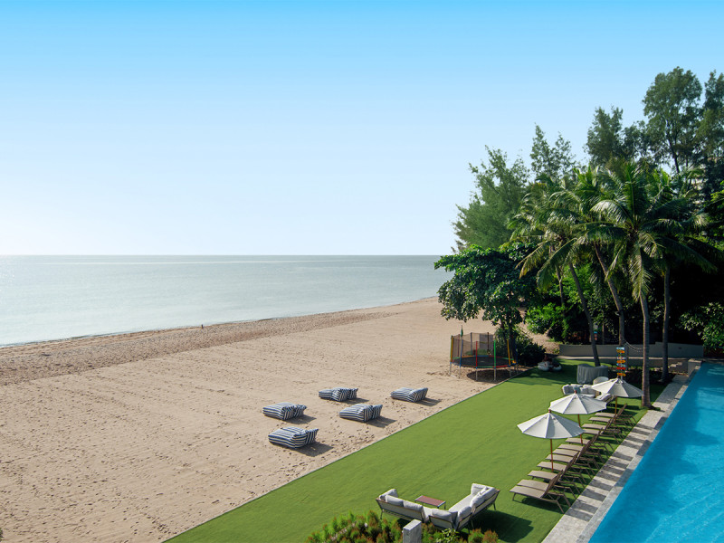 Im Veranda Resort & Villas Hua Hin Cha Am wohnt Ihr direkt am Strand von Cha‑Am und spürt vom ersten Schritt an die Gelassenheit eines Resorts, das Raum für Ruhe und gemeinsames Erleben bietet. Weitläufige Sonnenterrassen, ein geschwungener Außenpool mit Wasserrutsche und viel Grün strukturieren den Tag klar und entspannt. Familien finden durchdachte Bereiche, während Paare die stilleren Zonen am Wasser wählen. Service und Abläufe wirken geordnet, ohne steif zu sein – Ihr richtet Euren Rhythmus am Meer aus. Highlight: Direktlage Strand – kurzer Weg, klare Ausrichtung auf Erholung am Wasser.