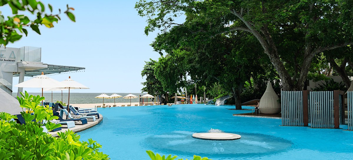 Veranda Resort & Villas Hua Hin Cha Am verbindet Strandlage in Cha‑Am mit klar strukturierten Bereichen für Ruhe, Familie und Aktivität. Außenpool mit Rutsche, Sonnenterrassen und Gartenflächen geben Euren Tagen Rhythmus, während Restaurant „I Sea“, Bar, Coffee‑Shop und Poolbar für verlässliche Pausen sorgen. Die Bewertungen loben Service und Zimmer deutlich.