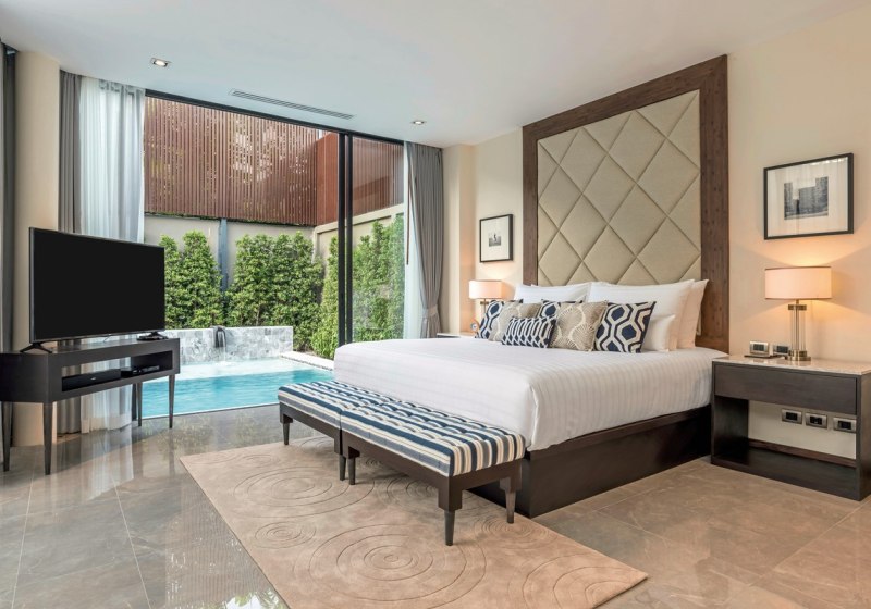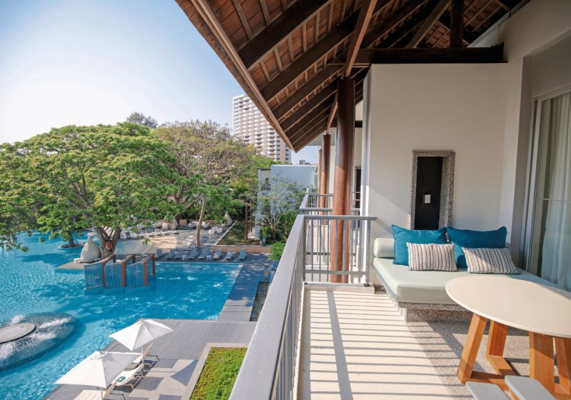 Die Mischung aus Resortcharakter und Villa‑Privatsphäre prägt die Atmosphäre. Zimmer mit Balkon oder Terrasse öffnen sich zu Garten, Pool oder Meer; ausgewählte Kategorien bringen Euch Whirlpool auf der Terrasse oder sogar einen privaten Pool am Balkon. Kulinarisch bleibt Ihr flexibel – vom Coffee‑Shop über Poolbar bis zum Restaurant „I Sea“. Für Abstecher lockt Hua Hin per Shuttleservice. So fühlt sich ein Tag wie aus einem Guss an, mit Optionen statt Pflichtprogramm – und genau der Dosis Aktivität, die Ihr sucht. Highlight: Villen‑Feeling – ausgewählte Zimmer mit privatem Pool schaffen Rückzug.