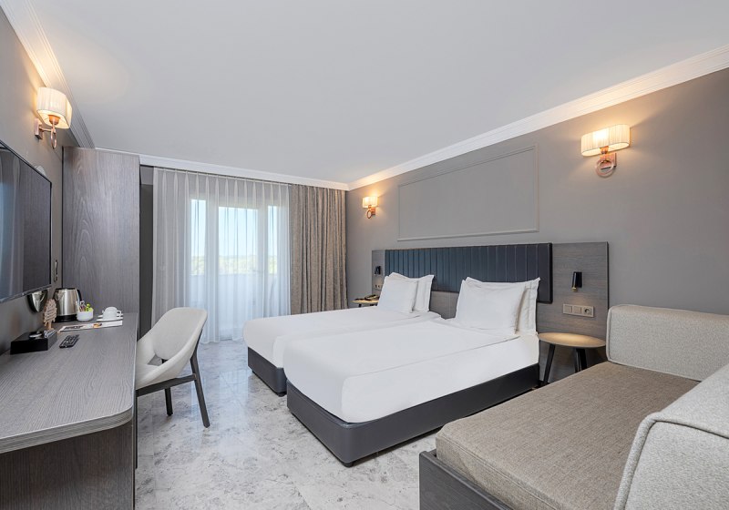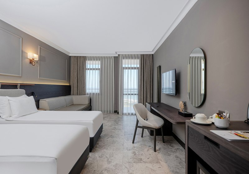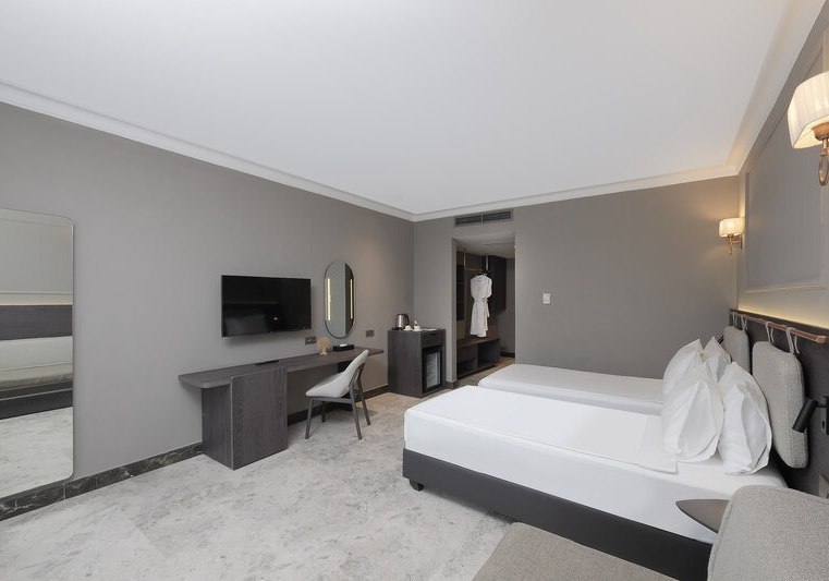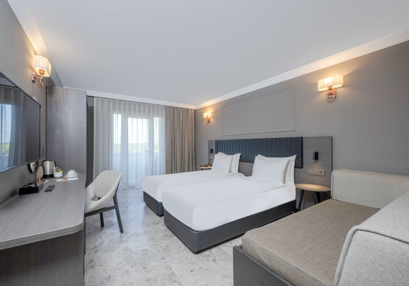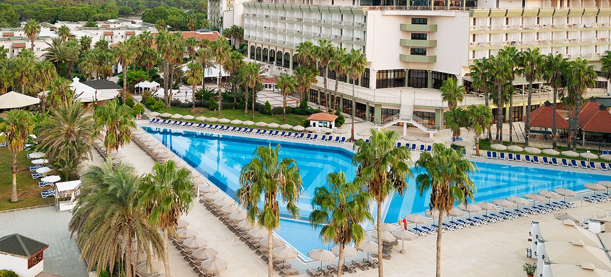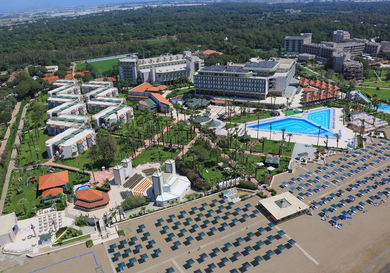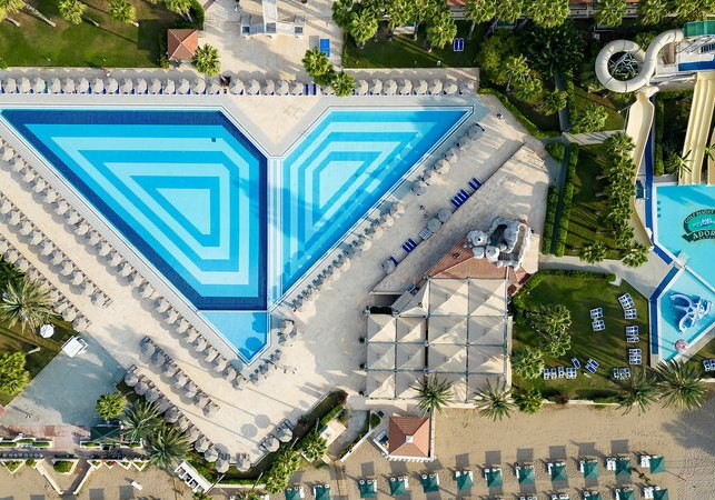 Im Adora Hotel & Resort trefft Ihr auf ein Resort, das seine Stärken klar ausspielt: direkte Strandlage in Belek, ein eigener Aquapark mit fünf Wasserrutschen und ein breites Angebot für aktive Tage und entspannte Abende. Die weitläufigen Außenbereiche mit Garten, Sonnenterrassen und mehreren Pools wirken strukturiert und einladend. Familien, Strandreisende, Golffans und Geschäftsreisende finden hier passende Bereiche, vom Miniclub bis zu Konferenzräumen.