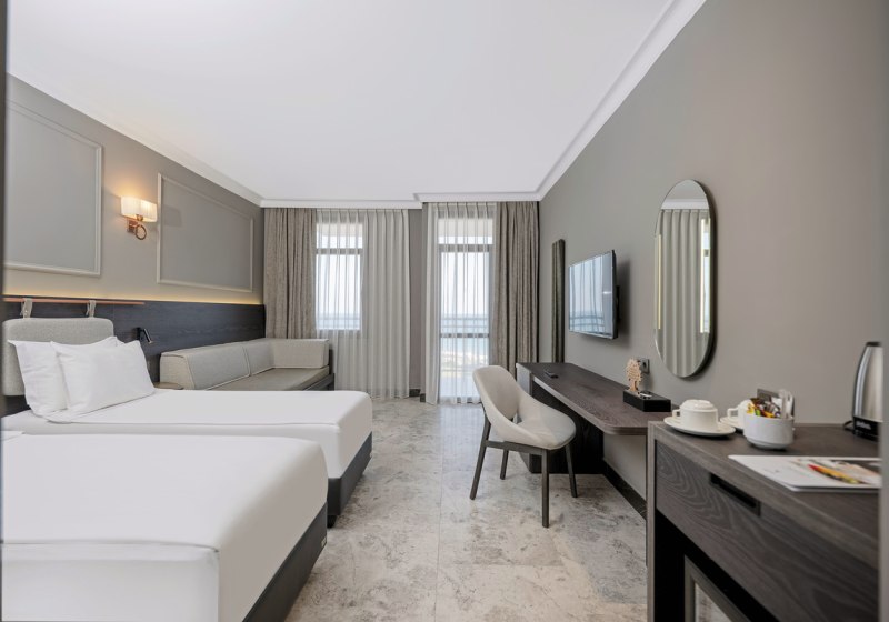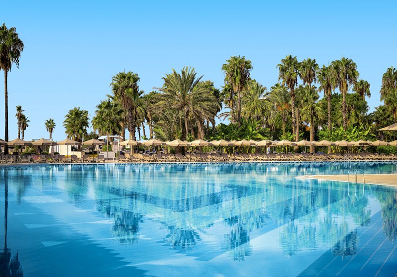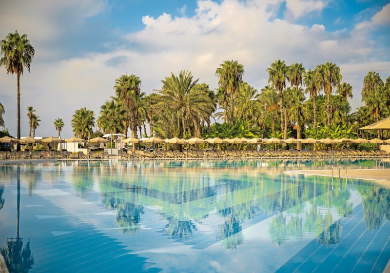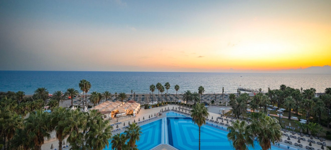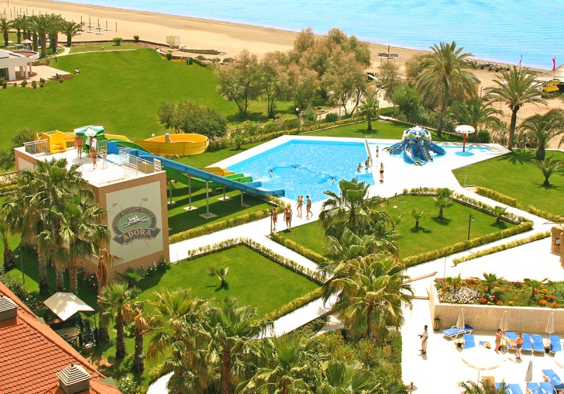 Das Adora Hotel & Resort verbindet direkte Strandlage, einen Aquapark mit fünf Rutschen und ein durchdachtes All‑Inclusive‑Konzept. Unterhaltung und Ruhe liegen nah beieinander: Animation am Tag, Livemusik und Diskothek am Abend, dazu ruhige Garten- und Terrassenbereiche.