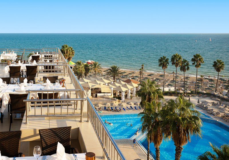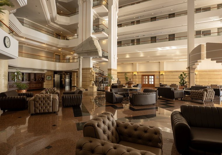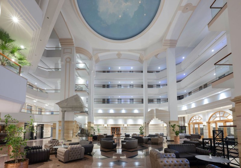 Mit All-Inclusive‑Leistungen, mehreren Bars und À-la-carte‑Restaurants bleibt Ihr kulinarisch flexibel. Tagsüber begleitet Euch ein Animationsprogramm; später wartet eine Diskothek für Erwachsene und Livemusik. Das Haus bietet 500 Zimmer, wurde 2024 renoviert und verbindet Freizeitkomfort mit praktischer Infrastruktur, darunter WLAN in Zimmern und öffentlichen Bereichen, ein Business‑Center sowie zahlreiche Servicepunkte vom Friseur bis zur Patisserie. Highlight: Direkte Strandlage mit Aquapark, ideal für aktive Strandtage.