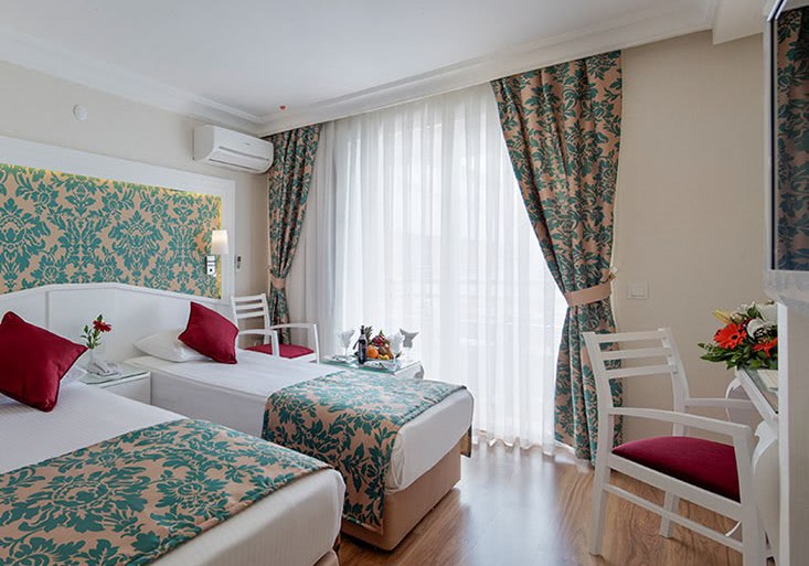 Mit Doppel- oder Twin-Betten, Zustell- oder Schlafsofa richtet Ihr die Belegung nach Bedarf aus; Nichtraucherzimmer sind vorgesehen. Einige Einheiten bieten barrierefreie Bäder, zudem sind rollstuhlgerechte Zimmer verfügbar. Ausgewählte Zimmer reichen bis zum Bergblick – eine ruhige, klare Perspektive über Alanya. Die Ausstattung bleibt bewusst unkompliziert, damit Ihr Strand, Stadt und Ruhephasen effizient verbindet. Highlight: Überschaubare, gut organisierte Zimmer mit Balkon, Klimaanlage und WLAN für planbare Erholung.