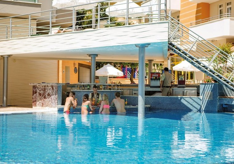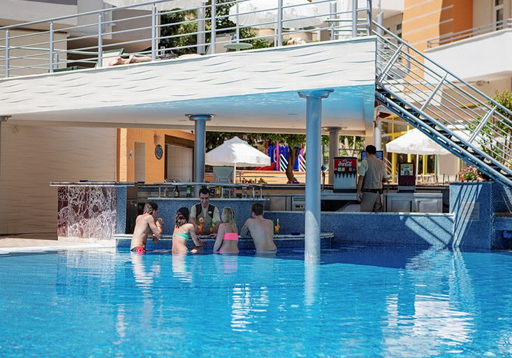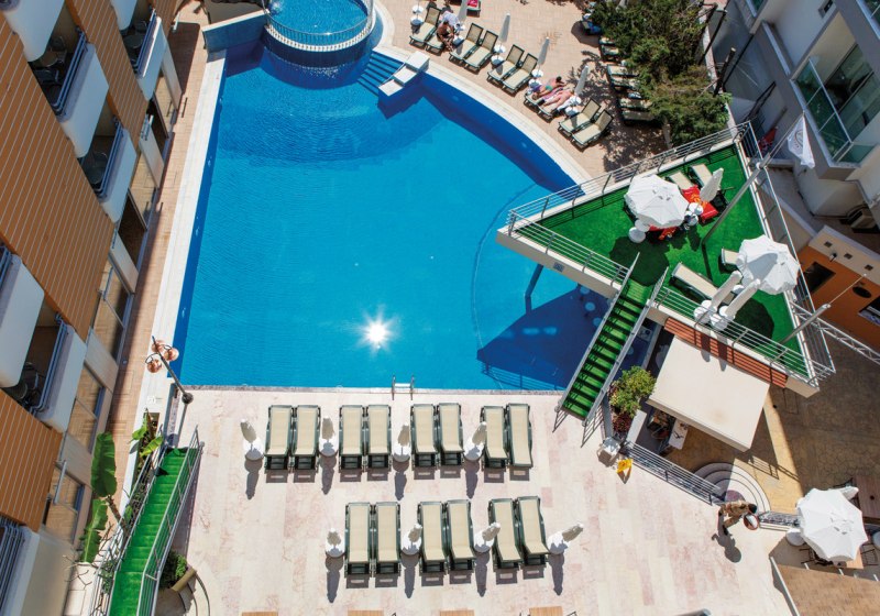 Für Familien ist die Balance aus Aktivität und Ruhe entscheidend: Der Kinderpool und der Spielplatz sorgen für kurze Wege zwischen Baden und Spielen, während Ihr in Sichtweite entspannt. Die öffentlichen Bereiche sind überschaubar, sodass Ihr Euch schnell zurechtfindet und spontane Programmpunkte leicht integrieren könnt. Wer später noch los will, erreicht in kurzer Distanz die Barszene von Alanya. Highlight: Animation und Live-Musik im Haus, Stadtleben nur wenige Schritte entfernt.