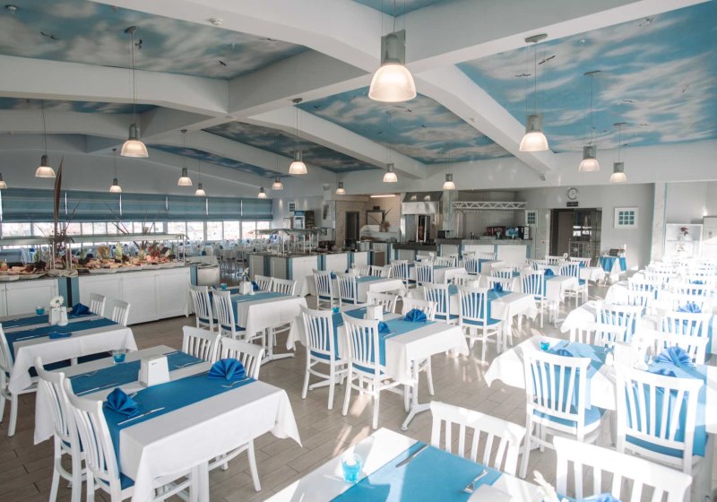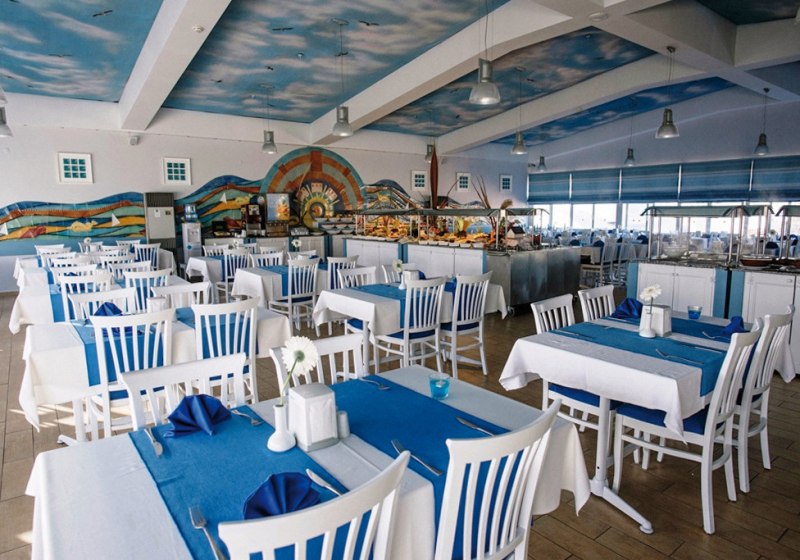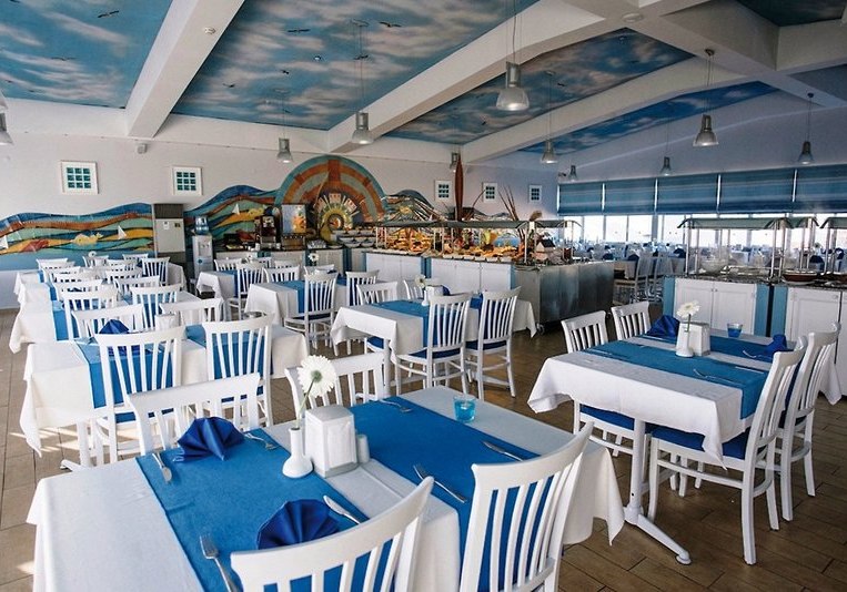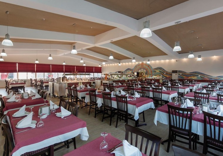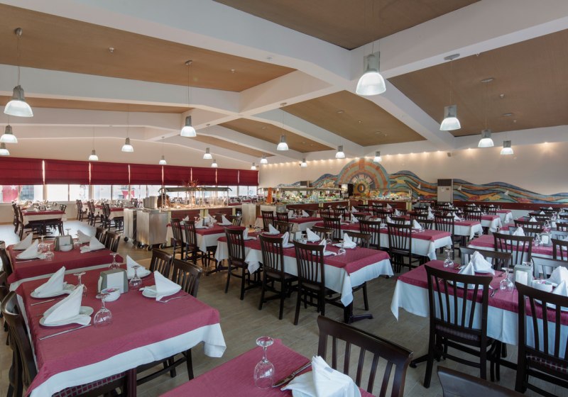 Im Hauptrestaurant erwartet Euch eine klare, alltagstaugliche Struktur: Frühstück, Mittag- und Abendessen sind planbar, ergänzend stehen je nach gebuchter Verpflegung All-Inclusive, Vollpension, Halbpension oder Übernachtung mit Frühstück zur Wahl. Getränke sind in der entsprechenden Verpflegungsleistung inklusive, was Euren Tagesablauf kalkulierbar macht. Die Wege sind kurz, die Abläufe effizient, ideal nach Strand- oder Stadttagen.