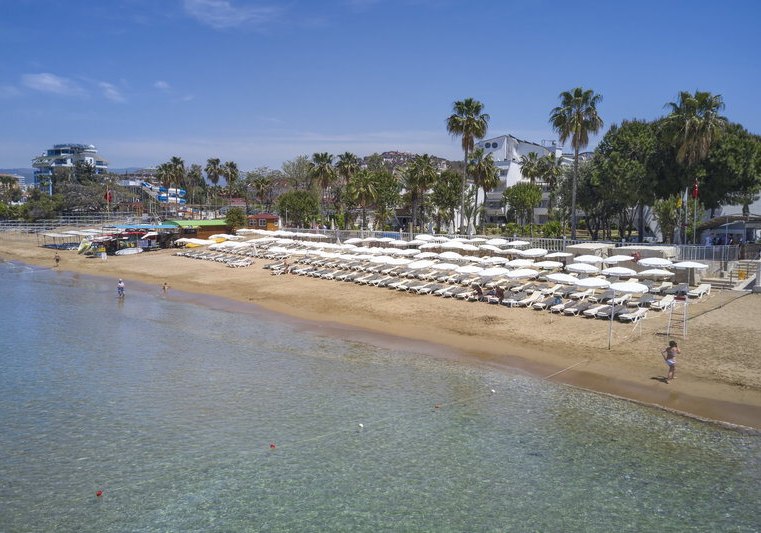 Incekum/Türkler liegt rund 22 Kilometer westlich von Alanya – weit genug für entspannte Tage, nah genug für Ausflüge in die Stadt. Ihr erreicht den öffentlichen Sandstrand nach etwa 100 Metern, Liegen und Sonnenschirme sind am Strand und am Pool verfügbar. Entlang der Hauptstraße warten Minibus- und Taxiverbindungen, sodass Ihr flexibel zwischen Hotel, Strand und Umgebung pendelt. In fußläufiger Distanz findet Ihr Bars, Restaurants und Einkaufsmöglichkeiten (je etwa 250 Meter), ein Club liegt ungefähr 500 Meter entfernt. Zum Flughafen Gazipaşa (GZP) sind es rund 65 Kilometer. Das Umfeld wirkt belebt, aber klar strukturiert, mit kurzen Wegen zu Alltagsdingen und schneller Anbindung in die Region. Wer das Zentrum von Alanya ansteuern will, plant eine überschaubare Fahrt, während Ihr vor Ort das animierte Strandleben mit direktem Hotelkomfort kombiniert.