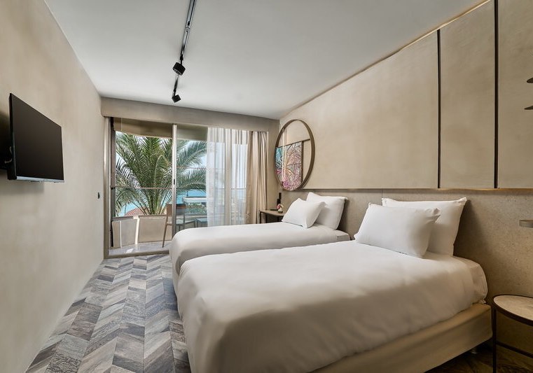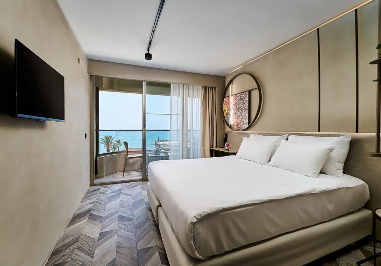 Die 68 Nichtraucherzimmer sind funktional ausgestattet: Klimaanlage, WiFi, TV, Safe und Minibar. Viele Einheiten verfügen über Balkon, wahlweise mit Meer-, Berg- oder Straßenblick. Das Bad bietet Dusche, Haartrockner und Kosmetikartikel; Fliesenboden sorgt für pflegeleichte Sauberkeit nach Strandtagen.