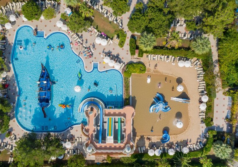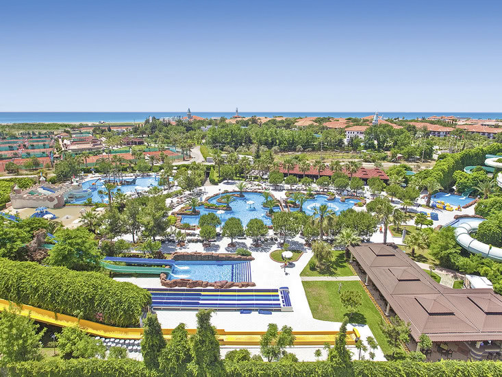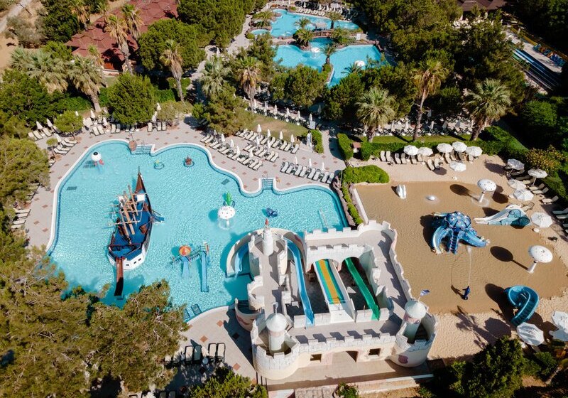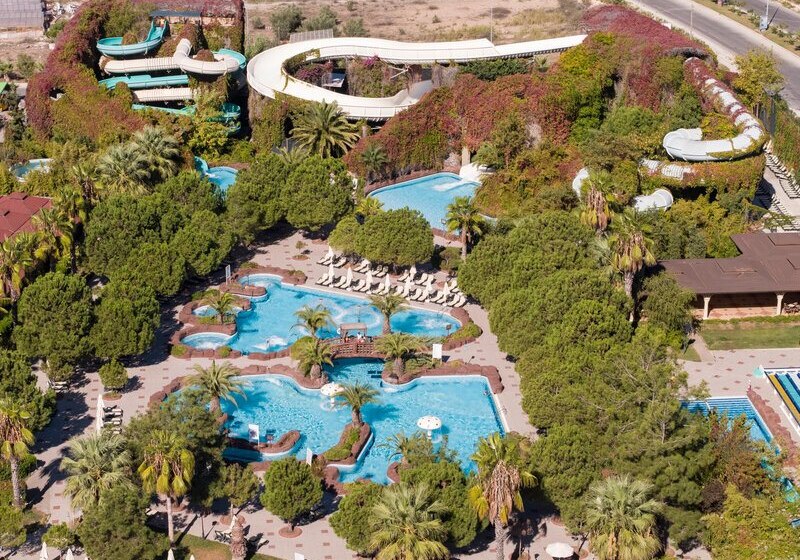 Im weitläufigen Resort Ali Bey Club Manavgat erlebt Ihr eine Anlage, die spielerisch zwischen lebendiger Action und erholsamen Rückzugsorten balanciert. Der Aquapark mit 25 Rutschen auf rund 25.000 Quadratmetern setzt ein kraftvolles Zeichen, während der Relaxpool für Erwachsene bewusst Tempo herausnimmt. Familien, Aktivfans und Strandliebhaber finden hier viel Raum für klare Tagespläne.