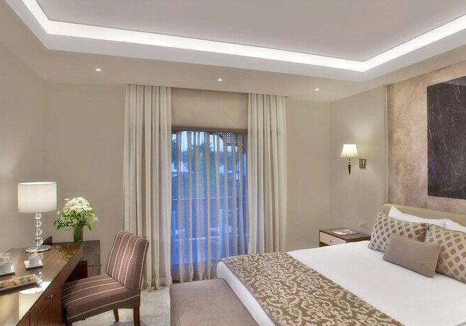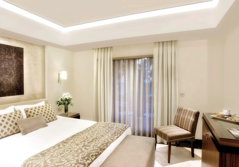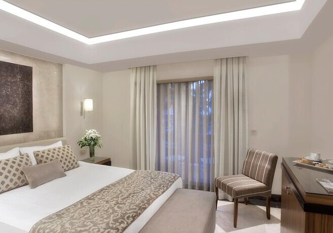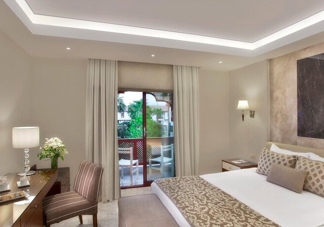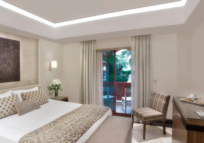 Die Zimmer sind funktional gedacht: Dusche, WC, Haartrockner, zentral gesteuerte Klimaanlage, Safe, Sat-TV und eine regelmäßig befüllte Minibar. Ein möblierter Balkon bringt Außenluft ins Spiel. Je nach Kategorie erwartet Euch Fliesen- oder Marmorboden – kühl, pflegeleicht und klar strukturiert.
