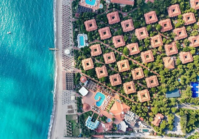 Das Resort liegt bei Side/Manavgat an der Türkischen Riviera, mit Side in etwa 17 Kilometern und Manavgat in etwa 12 Kilometern Entfernung. Der Flughafen Antalya ist rund 80 Kilometer entfernt. Ihr profitiert von Küstennähe, einem privaten Sand-/Kieselstrand (ca. 800 m) sowie einer Umgebung, die Ausflüge zu antiken Stätten und in quirlige Küstenorte nahelegt.
