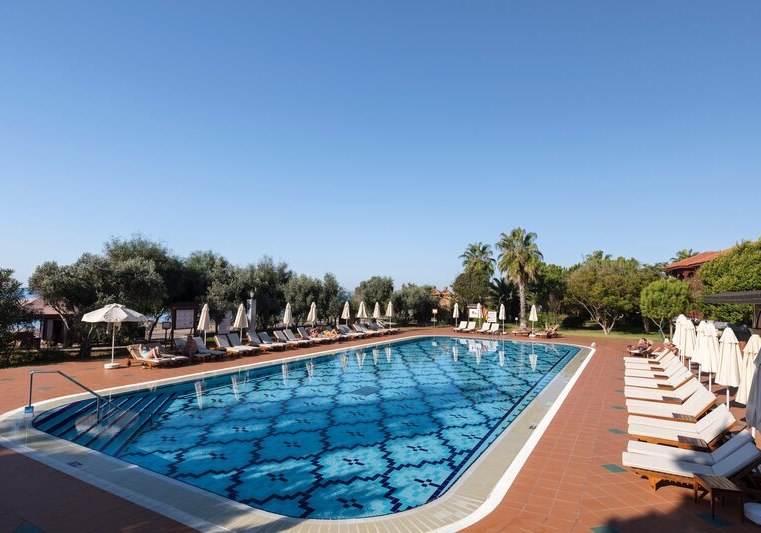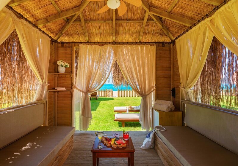 Die üppige Infrastruktur wirkt wie ein kleines Ferienuniversum: 62 Tennisplätze, ein privater Sand-/Kieselstrand (ca. 800 m), Strandpavillons, mehrere Restaurants und Bars. Dazu gesellt sich ein strukturiertes Animations- und Sportprogramm vom frühen Morgen bis in den Abend. Ihr wählt fokussierte Bewegung, unkomplizierte Badezeit oder genussvolle Pausen – alles liegt nahe beieinander.