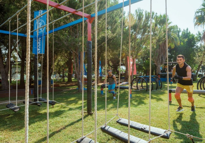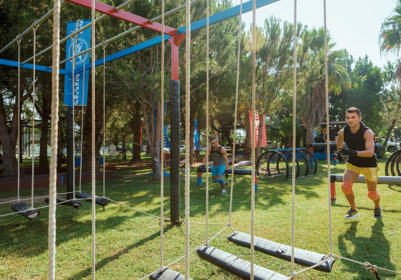 Sport kommt im Ali Bey Club Manavgat mit deutlicher Schlagzahl: 62 Tennisplätze, dazu Beachvolleyball, Wasserball, Bogenschießen, Boccia, Darts, Shuffleboard, Yoga, Tischtennis und ein Fitnessraum. Minigolf und der Adventurepark setzen spielerische Akzente für gemeinsame Runden.