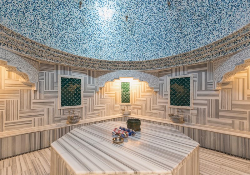 - Erholsame Wärme: Sauna, Dampfbad, Hamam und Ruheraum bilden den ruhigen Gegenpol.