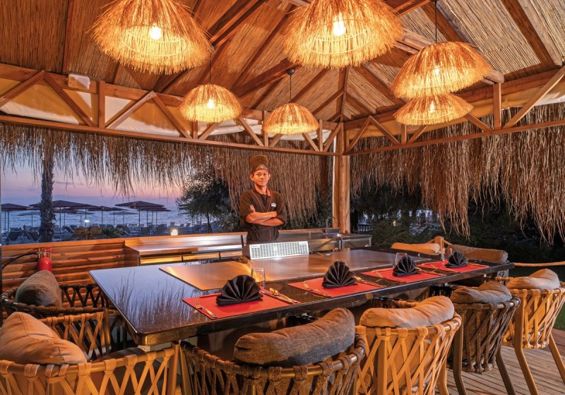 Kulinarisch führt Ihr die Gabel von internationalen Buffets mit Terrasse zu zwei À-la-carte-Optionen, die international und japanisch akzentuieren. Das Strandrestaurant serviert unkompliziert in Wassernähe, flankiert von Café, Lobbybar, Poolbar und weiteren Bars für den passenden Zwischenton.