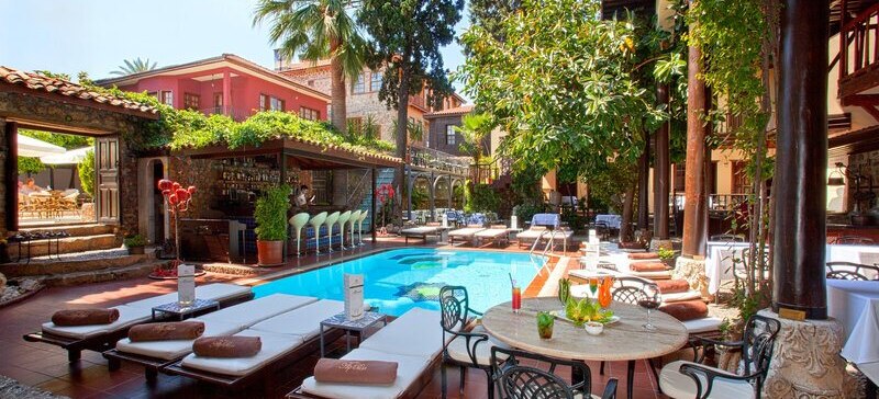 Im Alp Pasa Hotel wohnt Ihr in einem historischen Anwesen aus dem 18./19. Jahrhundert, mitten in der Altstadt von Antalya. Zwischen Kopfsteinpflaster und Hofgarten wirkt der Aufenthalt persönlich und nahbar. Highlight: Historisches Boutiquehotel mit hauseigenem Open-Air-Museum und ruhigem Innenhof. Das Flair verbindet Designanspruch mit dem Charme eines Romantik- und Hotel-de-Charme-Hauses.