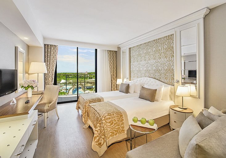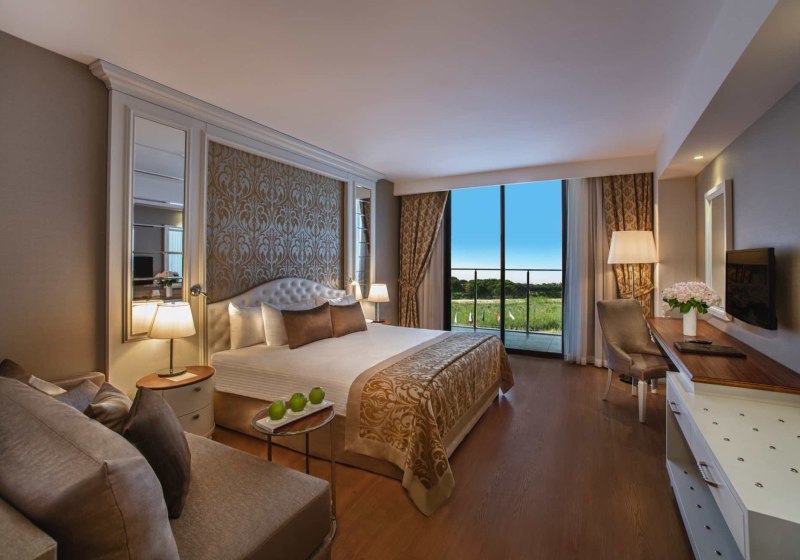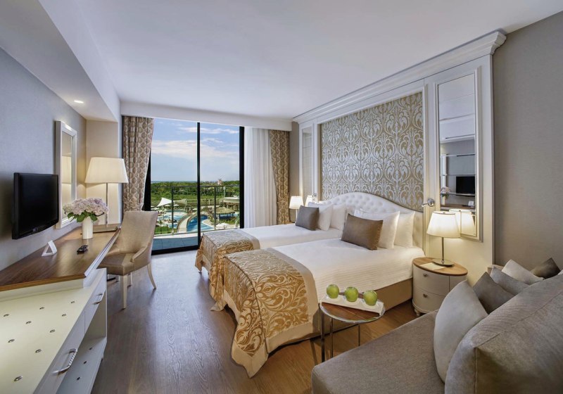 Aska Lara Resort & Spa kombiniert ein klar organisiertes Haupthaus mit einem großen, exklusiven Beachpark gegenüber. Wasserpark, Pools, Tennis und Fitness liefern Struktur für aktive Tage; Spa, Terrassen und Strandabschnitte schaffen den Gegenpol. Das gastronomische Angebot ist breit und flexibel, Bewertungen für Essen und Service sind hervorragend.