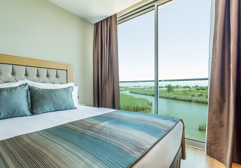 Familien greifen zu Zimmern mit separaten Schlafräumen oder Verbindungstür. Die River-Zimmer im Nebengebäude bieten französischen Balkon, Tee-/Kaffee-Setup, Waage, individuell regulierbare Klimaanlage und HD-Sat-TV. Haustiere sind nicht erlaubt. Wer Wert auf Lage und Wege legt, beachtet die Verteilung: River-Gebäude als separates Nebengebäude, Haupthaus mit zehn Etagen. Optionen für ruhige oder lebhafte Zonen ergeben sich daraus. Highlight: River-Zimmer mit Extras und klarer Trennung zum Haupthaus.