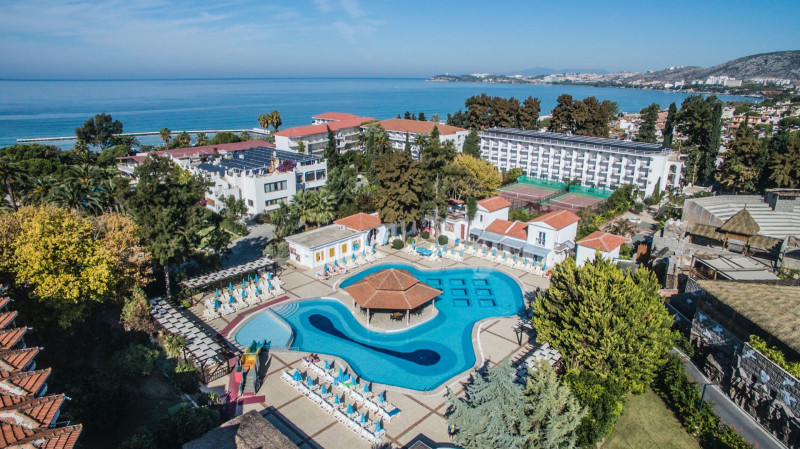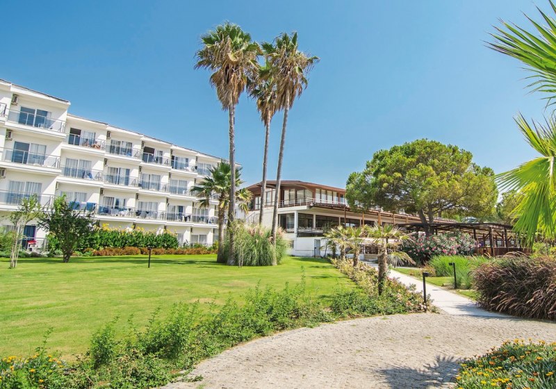 Direkt am Sandstrand gelegen, verbindet Atlantique Holiday Club Badezeiten mit kurzen Wegen. Vor dem Hotel halten öffentliche Minibusse, das Zentrum von Kuşadası liegt etwa neun Kilometer entfernt. So erreicht Ihr Basare, Hafenpromenade und Restaurants bequem, kehrt aber jederzeit in die ruhige Strandlinie der Anlage zurück.