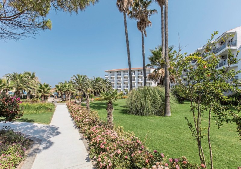 Eure Zimmer sind funktional ausgestattet: Dusche/WC, Föhn, individuell regulierbare Klimaanlage, Telefon und Sat-TV. Ein Minikühlschrank hält Getränke kühl, der Balkon öffnet den Blick ins Grün oder zum Meer, je nach gebuchter Kategorie.